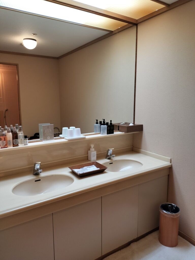 ちょっとびっくりしたのですが、座ってスキンケアをするスペースがありませんでした。