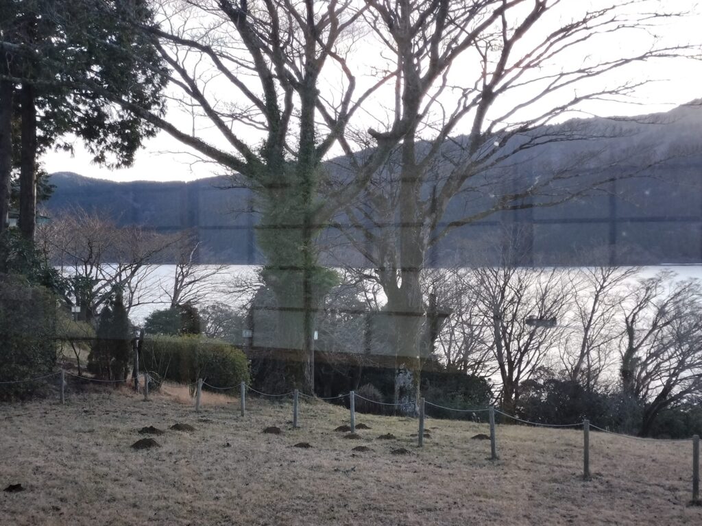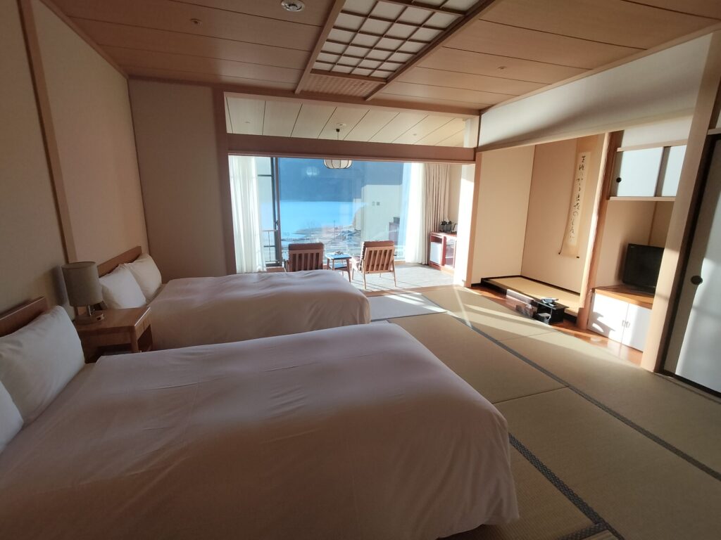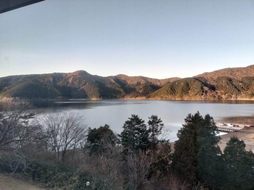 広縁からの景色。芦ノ湖が綺麗に見えます。
