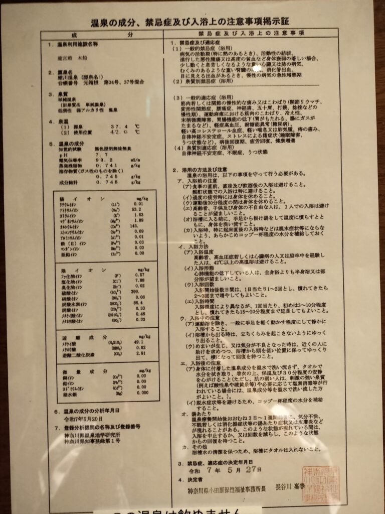 温泉の成分表です。